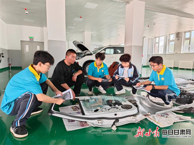在灵台县职业中专汽车实训基地,授课教师采用理论与实践紧密结合的方式,为学生系统讲解汽车基础知识、日常维护保养及故障诊断等内容,并进行手把手实操指导。