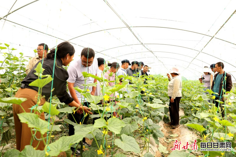 秋日的贾河乡大堡子村,乡村振兴人才实训基地的温室大棚内绿意盎然,西红柿挂满枝头、黄瓜藤蔓垂坠,一场别开生面的“田间课堂”正在进行。来自何家堡乡白水川村的“土专家”马巧菊手持菜苗,用“乡土话”讲解着“备垄、栽培、铺膜、吊蔓”等种植技巧,周边致富带头人及村民围坐聆听,在实操中汲取种植“干货”。