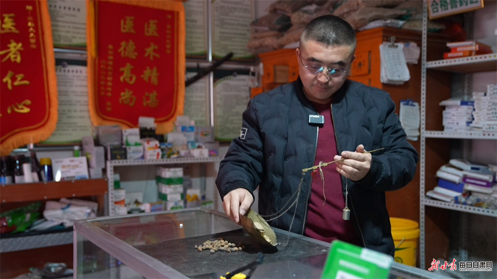 上午十点,杨崖集镇魏家岔村的“六和饲料张彪兽医门诊”里,张彪正耐心地为养殖户讲解兽药的使用方法。张彪与兽医的缘分,始于童年时舅爷的影响。舅爷是一名乡村赤脚医生,常为牲畜治病。那份用手艺服务乡亲的精神,在他心中早早埋下了理想的种子。2012年,张彪高中毕业后,如愿考入甘肃畜牧业职业技术学院兽医专业。在校期间,他不仅系统学习理论知识,更在动物门诊实践中积累了丰富经验,一步步将书本知识转化为实战技能。