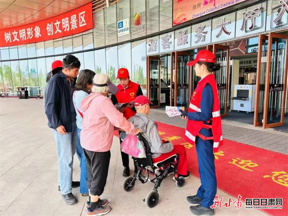 推行“三固定、六统一”志愿服务模式,组建旅游青年志愿服务队,定期开展服务技能培训9场次,持续提升青年志愿者专业素养。在丹霞高速出口、七彩丹霞景区入口、丹霞口文旅小镇、游客集散中心四个重点区域设立服务岗,上岗830人次,为游客提供路线指引、美食推荐、文旅打卡点推介、行李临时托管等帮办服务3200余件,主动推介倪家营子红色记忆、枣乡特色美食等文旅资源,发放融合非遗元素的宣传资料2万余份。2025年以来,累计服务时长超2900小时,接待游客20万人次,收到游客现场感谢及线上好评超3000条。青年志愿者化身“文旅活地图”,以贴心服务让“志愿红”成为临泽旅游最温暖的底色。