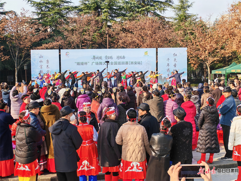 每日甘肃网讯(新甘肃·每日甘肃网通讯员 刘辉)12月4日,“娥嫚杯”广场舞大赛全国巡回赛暨甘味陇货城市行西安站活动在西安博物院小雁塔景区圆形广场精彩启幕。这场由宕昌县委、县政府牵头,陕甘两地多部门联合主办的跨区域盛会,以“文化搭台、文旅赋能、农货出山”为核心,通过文体竞技、文旅推介、产销对接等多元形式,奏响了陕甘文旅农深度联动的新篇章。