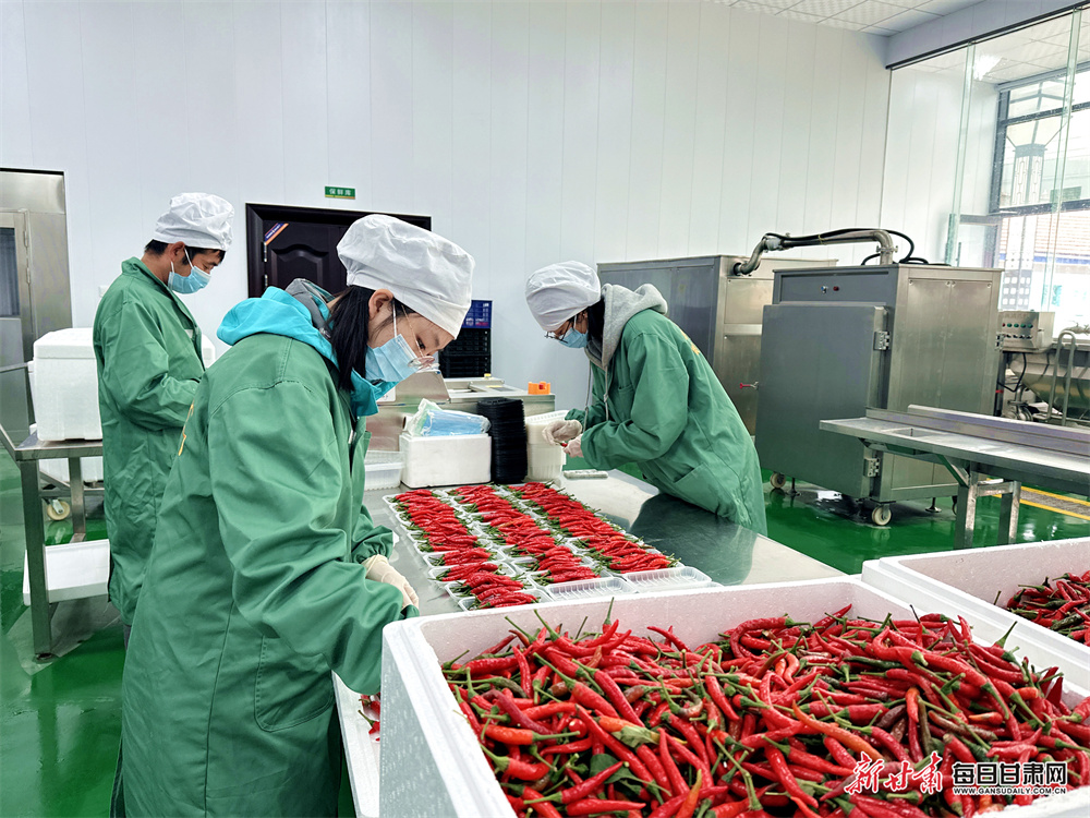 工人正在车间打包朝天椒。李建强 摄