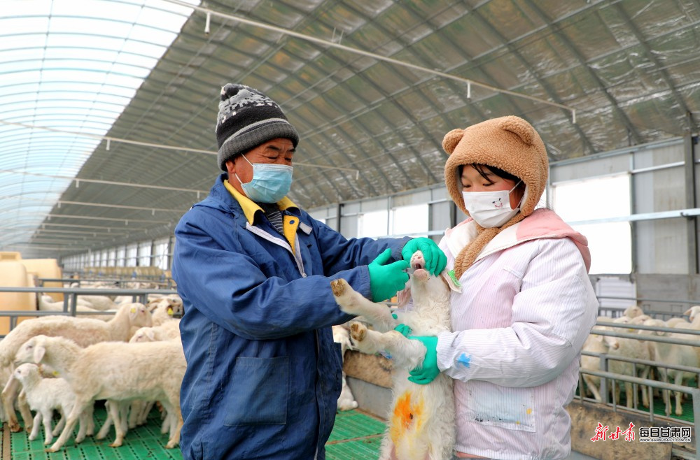 甘肃华瑞农业股份有限公司工作人员正在对羊羔进行布病检测。
