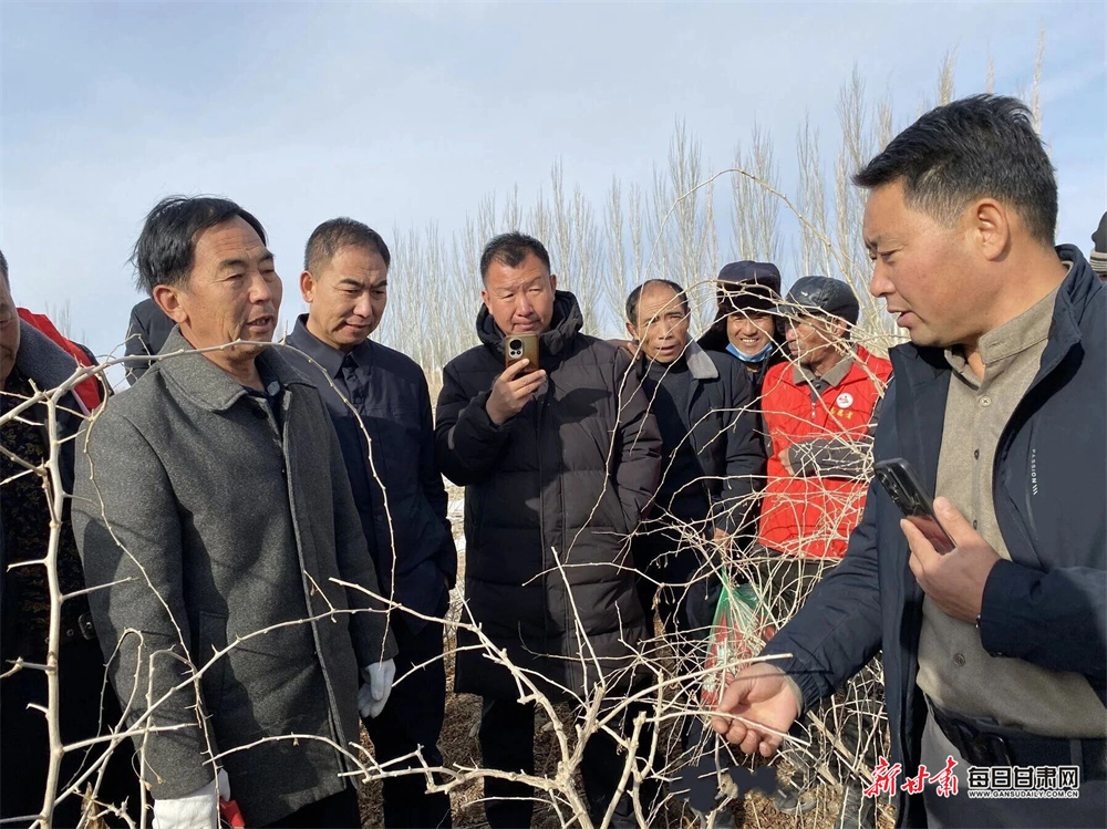 高位谋划,专家团队把脉问诊。瓜州县林果技术服务中心深刻认识到,科学精细的冬季修剪是调节树体营养、优化树形结构、减少病虫害、提升来年枸杞产量与品质的核心环节。为此,林果中心在新年之初主动邀请宁夏枸杞专家团队深入全县主要枸杞产区,进行实地勘察与现场“会诊”。宁夏枸杞研究所的专家们结合瓜州独特的气候及各片区枸杞生长实际,针对不同树龄、不同品种的枸杞,制定了差异化的修剪技术方案与标准化操作规范,为后续修剪作业提供了精准的科学指引。