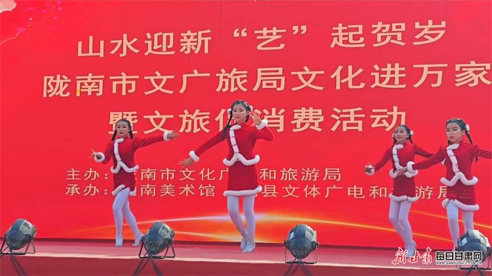 每日甘肃网讯(新甘肃·每日甘肃网通讯员 薛小平)为丰富群众新春文化生活,激活文旅消费市场,2月1日,由陇南市文化广电和旅游局主办,陇南美术馆、礼县文体广电和旅游局承办的“山水迎新‘艺’起贺岁”陇南市文化进万家暨文旅促消费活动在礼县举行。活动以文化惠民为核心,融合文艺展演、新春送福等多元形式,为当地群众献上了一场年味浓郁的文化盛宴。
