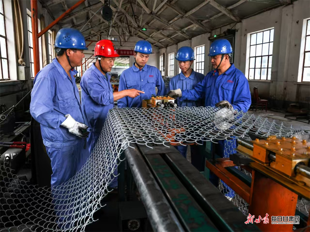 崇信新鹏机械制造有限公司员工研究菱形网生产效率提升技术。