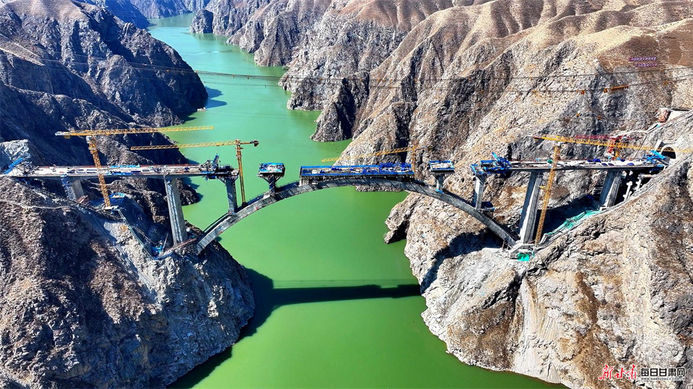 在兰合铁路洮河大桥建设项目现场,这座全长430.5米且主桥跨径220米的上承式劲性骨架钢筋混凝土拱桥已全部完成拱上立柱施工,正在进行拱上现浇连续梁施工作业,后续还将加快其附属设施配套建设。洮河大桥项目隶属兰合铁路全线重难点工程,现已建设完成总工程量的80%,预计于今年9月实现桥体线路贯通完工,届时将为兰合铁路项目按时通车奠定坚实基础。