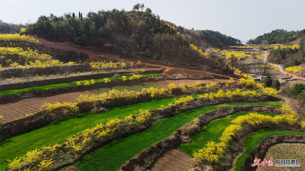 春日陇原,群山披绿。陇南市成县沙坝镇的核桃林下、地埂边沿、荒坡山野间,连翘花竞相绽放,一簇簇金黄缀满枝头,勾勒出一幅生机盎然的春日画卷。村民们抢抓春季管护关键期,除草、修枝、栽植幼苗,以一株株连翘撬动特色产业发展,让小小中药材成为乡村振兴的“黄金产业”。