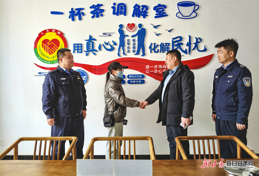 每一起矛盾化解后,调解室都会通过“饮茶言和”促成双方握手言和,签订协议并留存暖心瞬间,同时建立回访机制,上门“再续一杯茶”,跟踪协议落实情况,严防矛盾反弹。