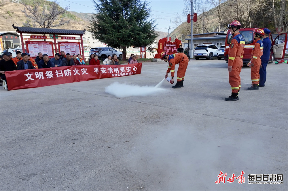在西和县石峡镇,消防人员联合村干部走村入户开展防火宣传,引导群众摒弃陋习,倡导文明绿色祭扫,将安全知识送到群众身边。