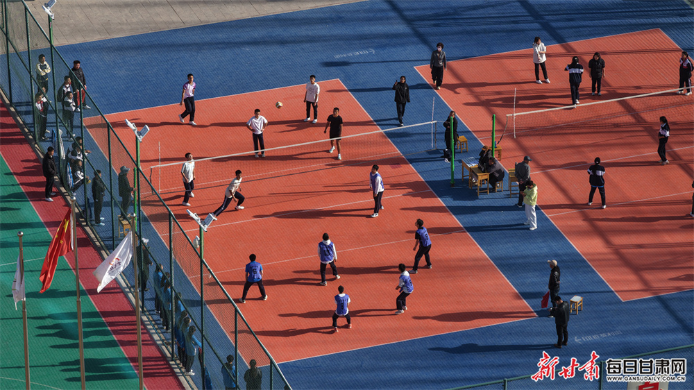 随着开赛哨声吹响,各赛场比赛同步开启。篮球场上,运球、突破、投篮一气呵成,攻防之间满是速度与激情;排球网前,垫球、传球、扣杀配合默契,每一次奋力救球都凝聚着团队力量;绿茵场上,小球员们带球奔跑、精准传接,追逐着足球梦想,赛场氛围全程高涨。“比赛前我们非常紧张,但是上场后队友们相互打气、相互鼓励,消除了大半紧张的情绪。比赛中我们全力以赴,每一次攻防都拼到最后,不仅收获了好成绩,更提升了篮球技艺、懂得了团结的意义,拼过就没有遗憾!”瓜州县第一中学学生王丽说。“足球是很考验团队配合的一项竞技运动,我们充分利用大课间等休闲时间,练习了足球配合、点球、射门等足球团队中必备的技能。在这次比赛中,队友们团结协作,也遇到了非常可敬的对手。我们会拿出全部实力,不辜负自己、不辜负团队,在绿茵场绽放光芒,为学校争光!”瓜州县第二中学学生王晶瑶说。赛场上,运动员们严守规则,秉持“友谊第一、比赛第二”的精神,每一场比拼都全力以赴;赛场边,啦啦队呐喊助威,加油声此起彼伏,成为赛场最温暖的底色,尽显瓜州学子团结奋进、朝气蓬勃的风采。“孩子们在赛场上表现出拼搏协作的精神风貌是非常值得赞扬的。平时我们通过社团活动和专业训练,从基础技术到战术配合进行全方位培养,这次比赛他们认真刻苦、状态拉满,表现十分出色。”瓜州县第一中学教师余函说。